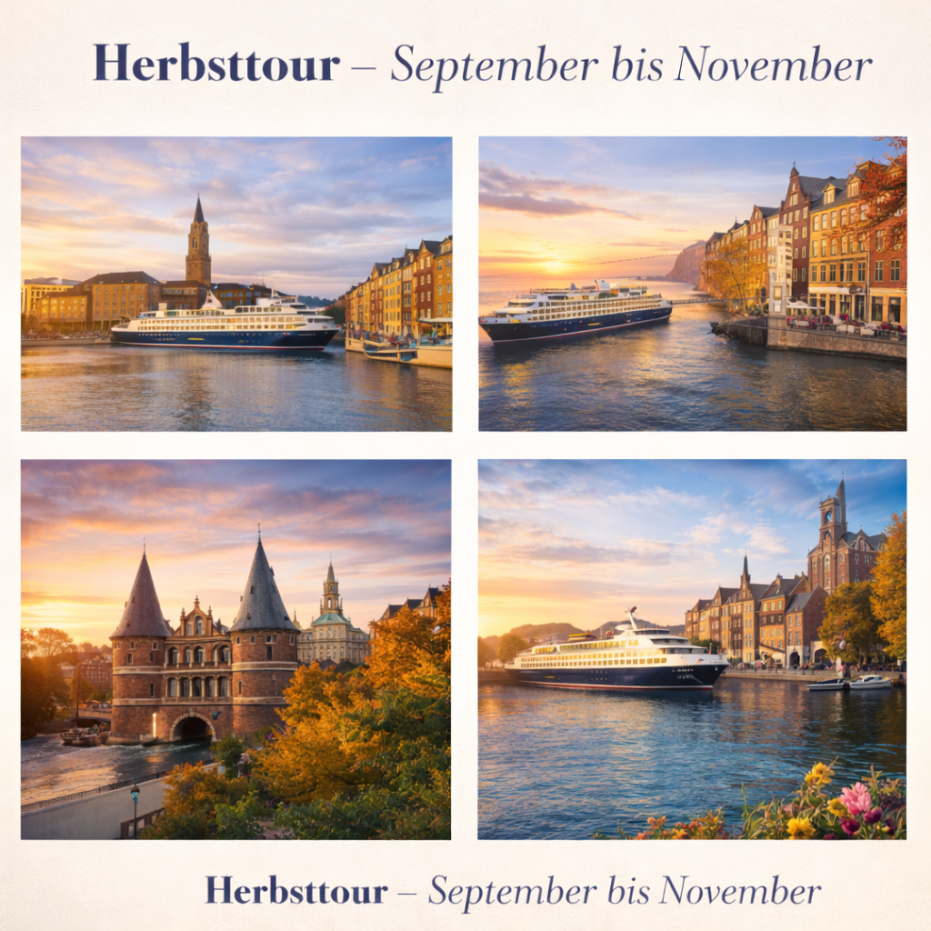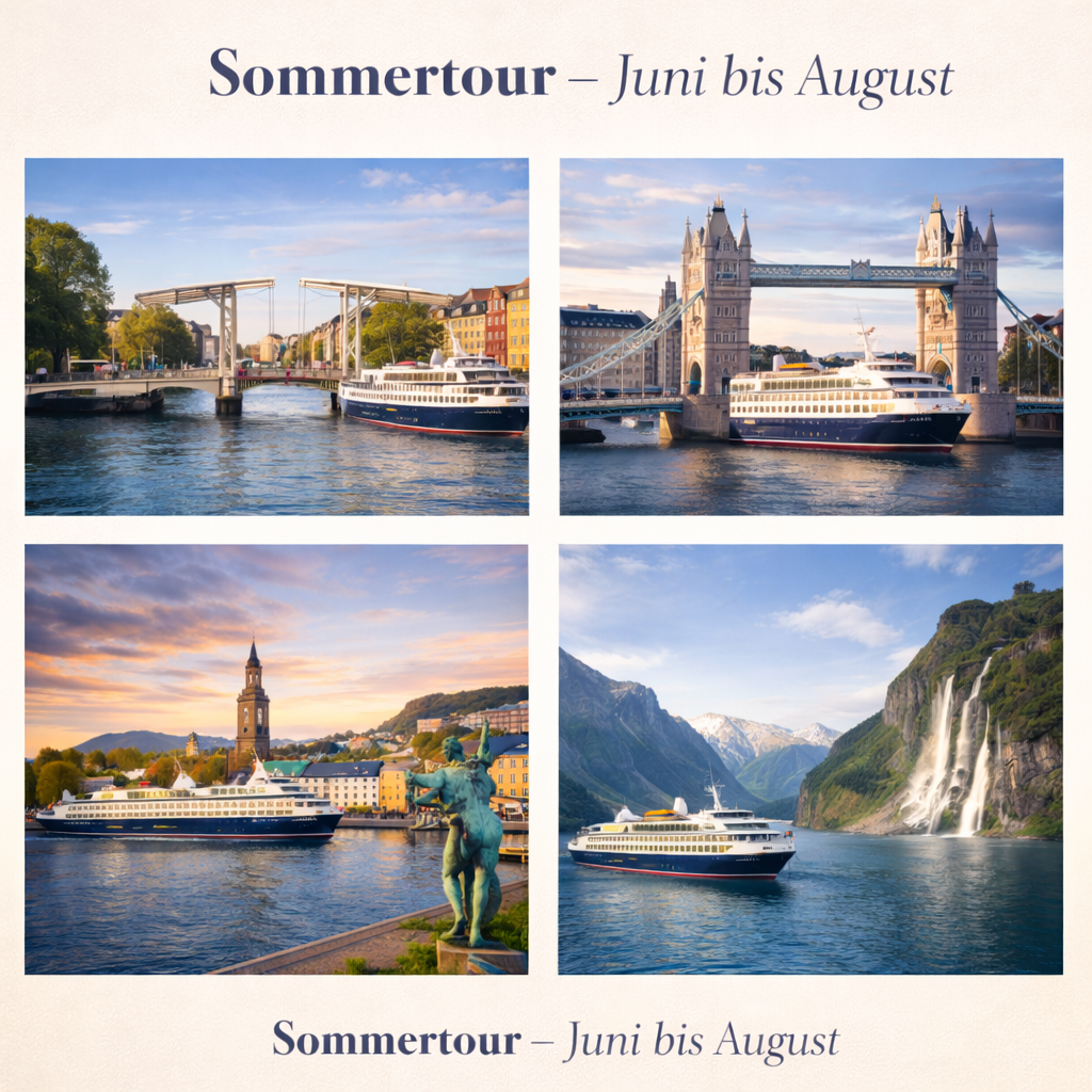 Die MS Abendstern fährt ganzjährig in ruhigem, komfortablem Tempo – mit Kiel als zentralem Heimathafen, den das Schiff regelmäßig anläuft. So bleibt die Verbindung zur Heimat immer erhalten, auch wenn die Reise in die Ferne führt.